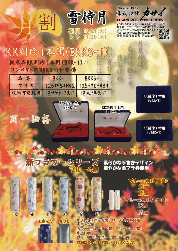 KK別珍1本用コンパクトサイズ、印鑑ケース新フラワーシリーズ