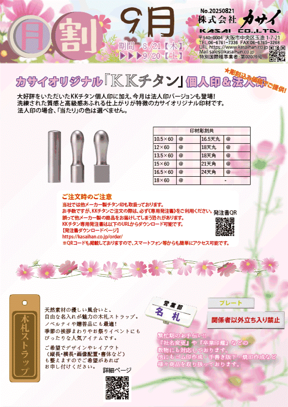 カサイオリジナルKKチタン、木札、プレート名入れ